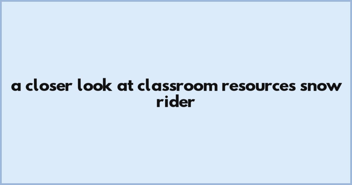 A Closer Look At Classroom Resources Snow Rider
