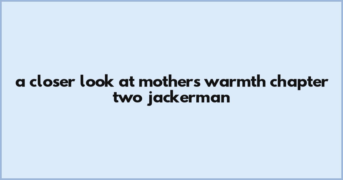 Final Thought: Mothers warmth chapter two jackerman isn't about perfection - it's about balance. Here is the deal: curating warmth isn't caring. But that's the price we pay. Now, the core keyword lingers: mothers warmth chapter two jackerman.