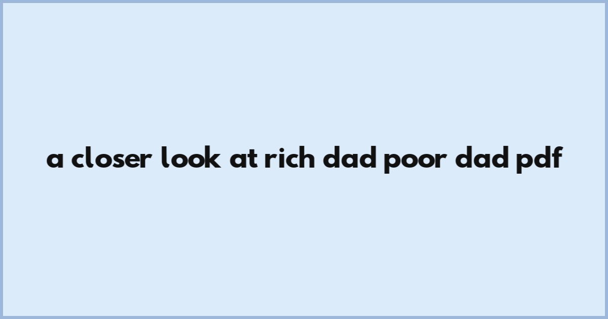 A Closer Look At Rich Dad Poor Dad Pdf