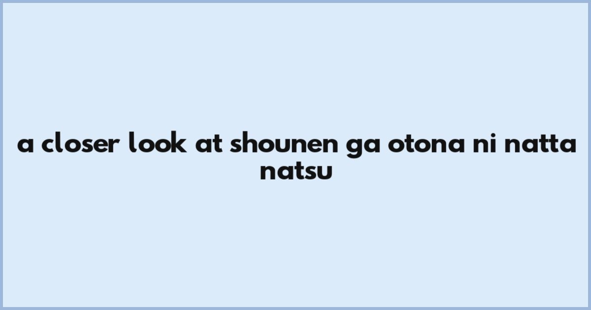 A Closer Look At Shounen Ga Otona Ni Natta Natsu