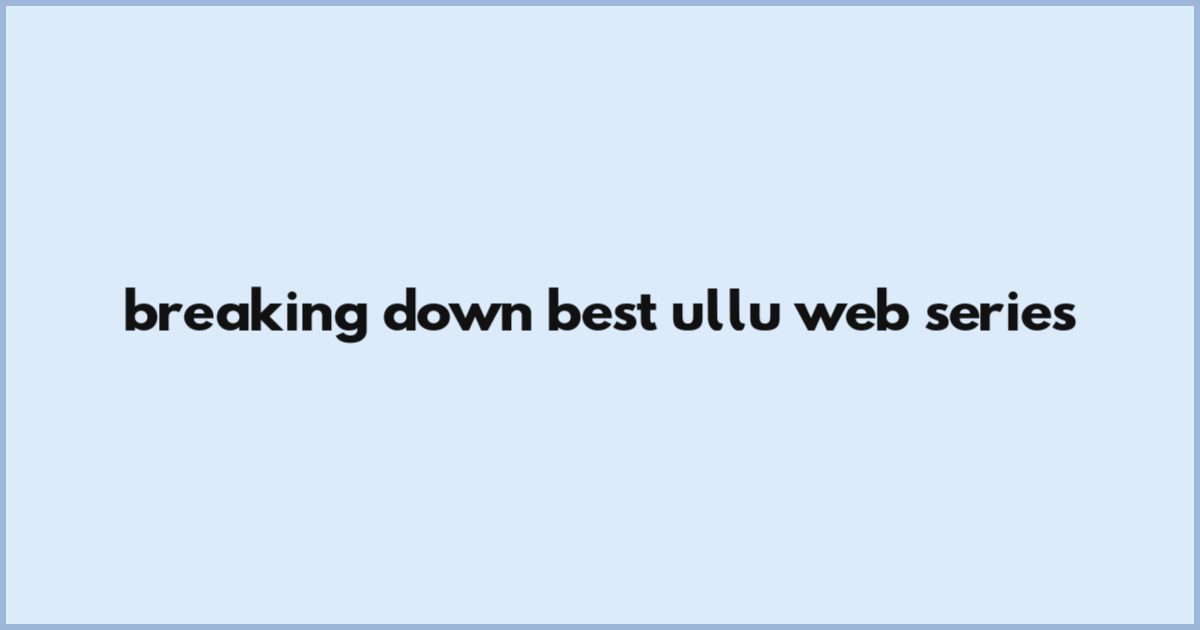 Breaking Down Best Ullu Web Series