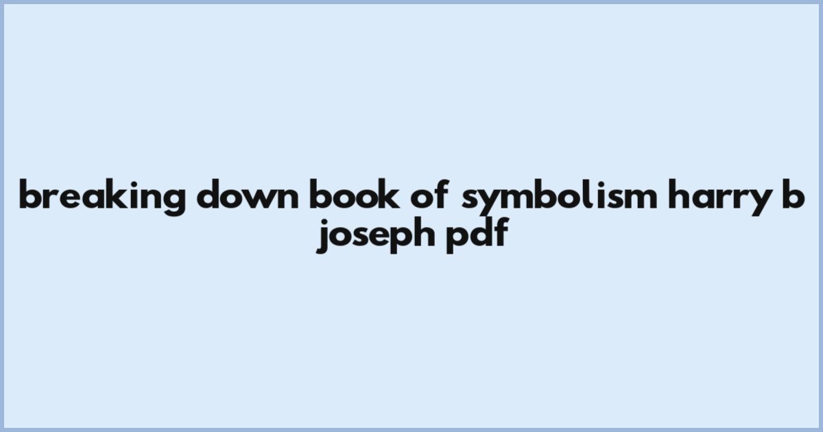 Breaking Down Book Of Symbolism Harry B Joseph Pdf