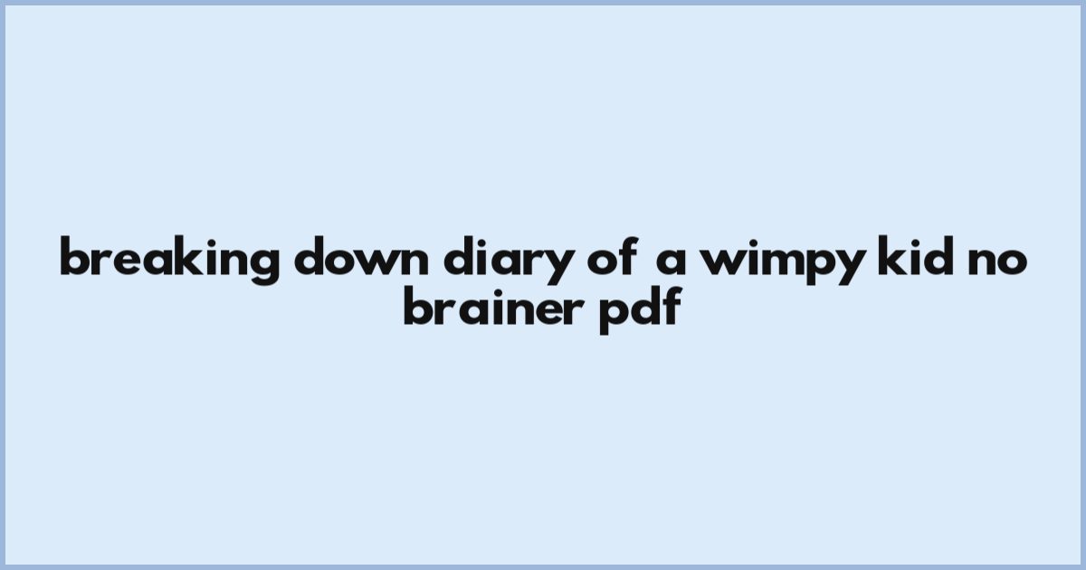 Breaking Down Diary Of A Wimpy Kid No Brainer Pdf