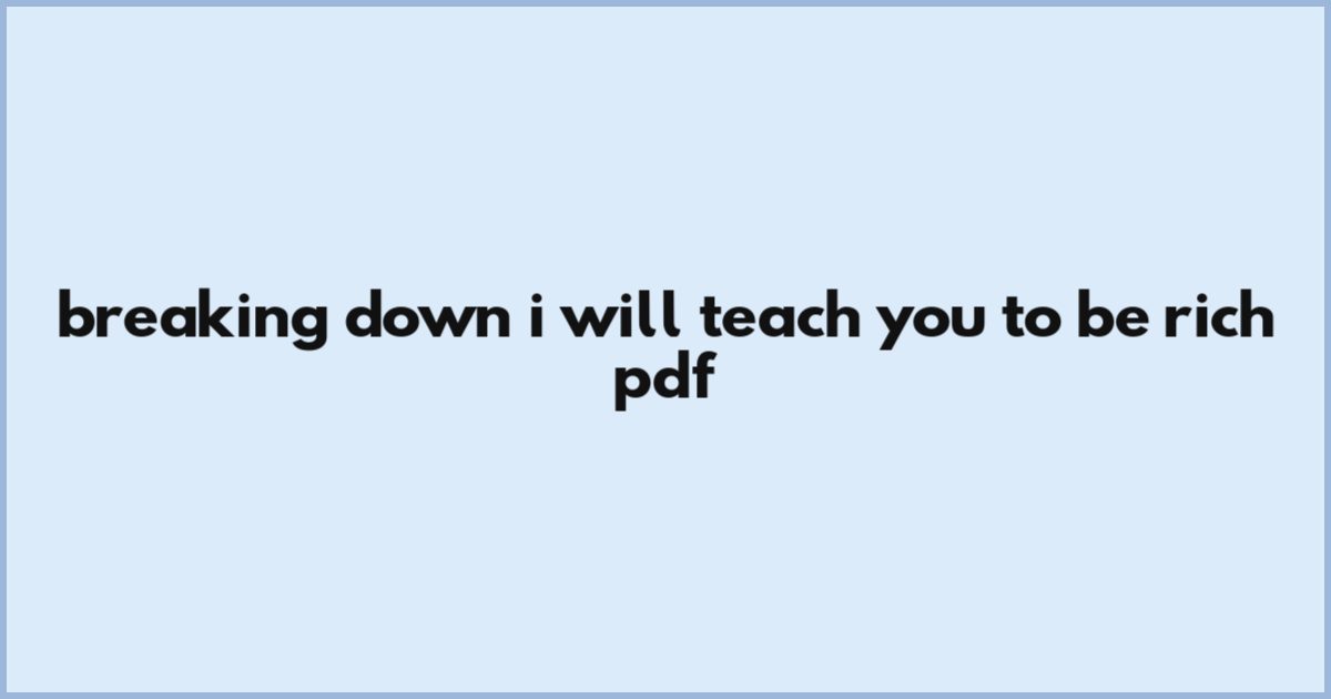 Breaking Down I Will Teach You To Be Rich Pdf