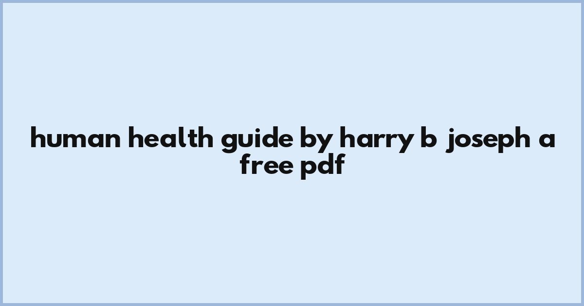 Human Health Guide By Harry B. Joseph: A Free PDF
