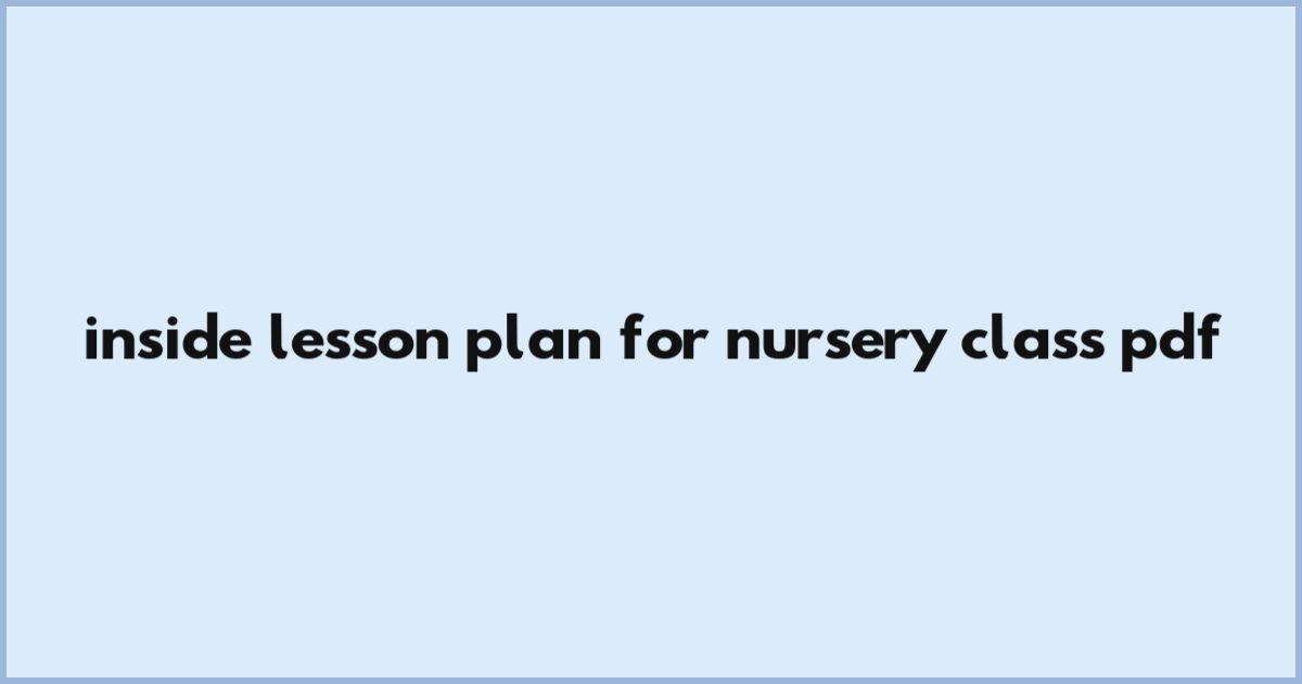 Inside Lesson Plan For Nursery Class Pdf