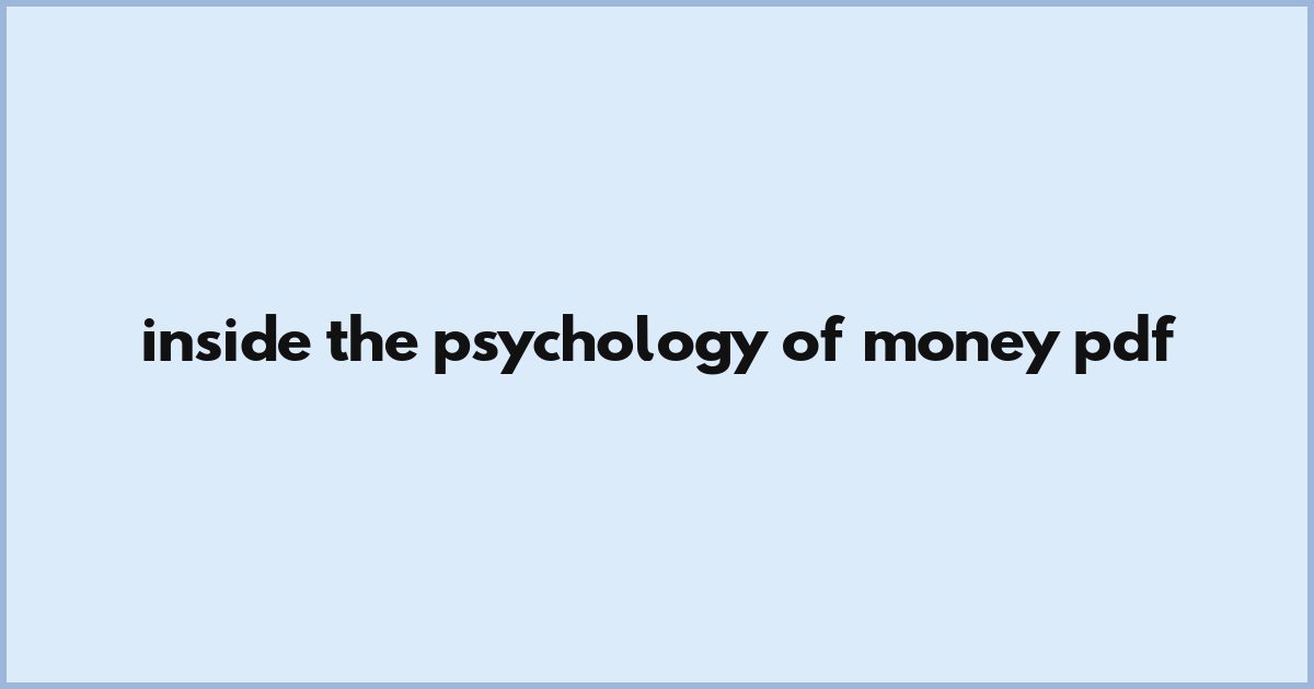 Inside The Psychology Of Money Pdf