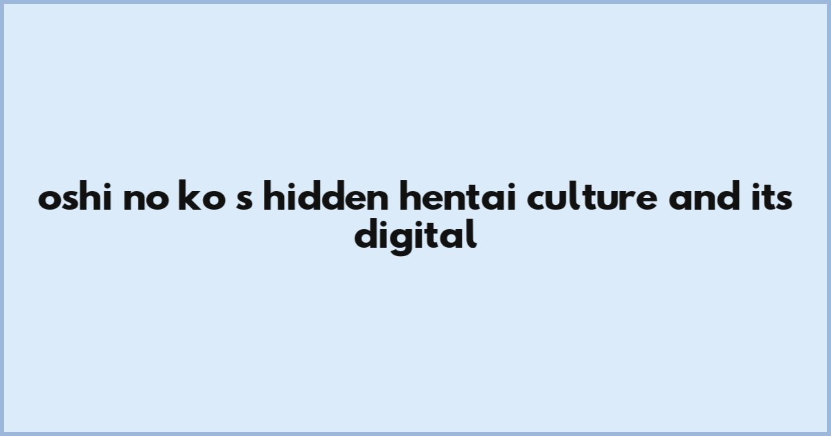 Oshi No Ko’s Hidden Hentai Culture And Its Digital
