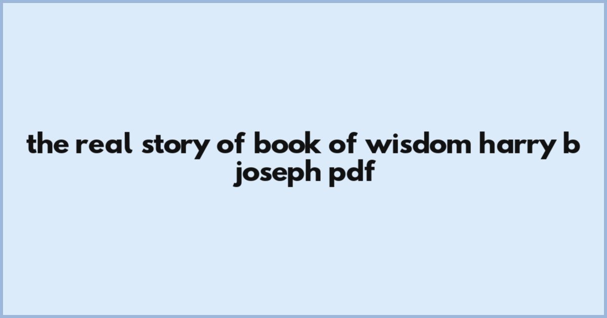 The Real Story Of Book Of Wisdom Harry B Joseph Pdf