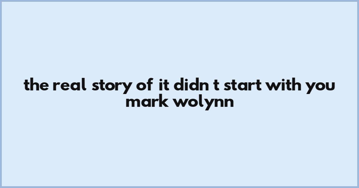 The Real Story Of It Didn't Start With You Mark Wolynn