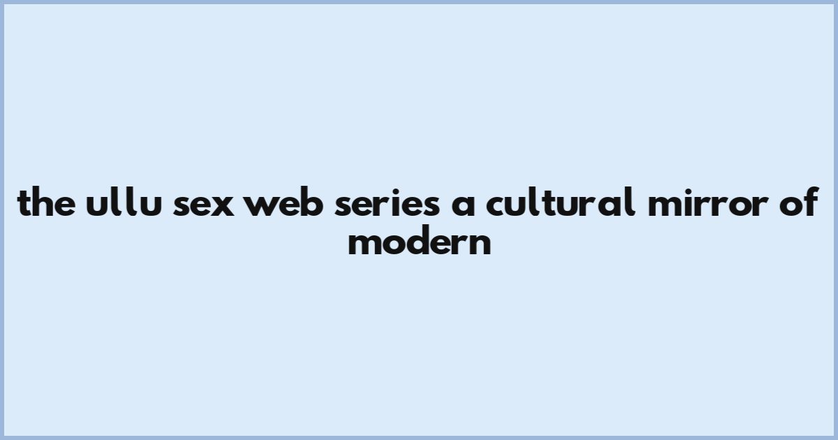 The Ullu Sex Web Series: A Cultural Mirror Of Modern